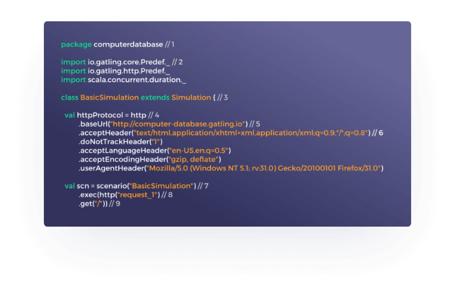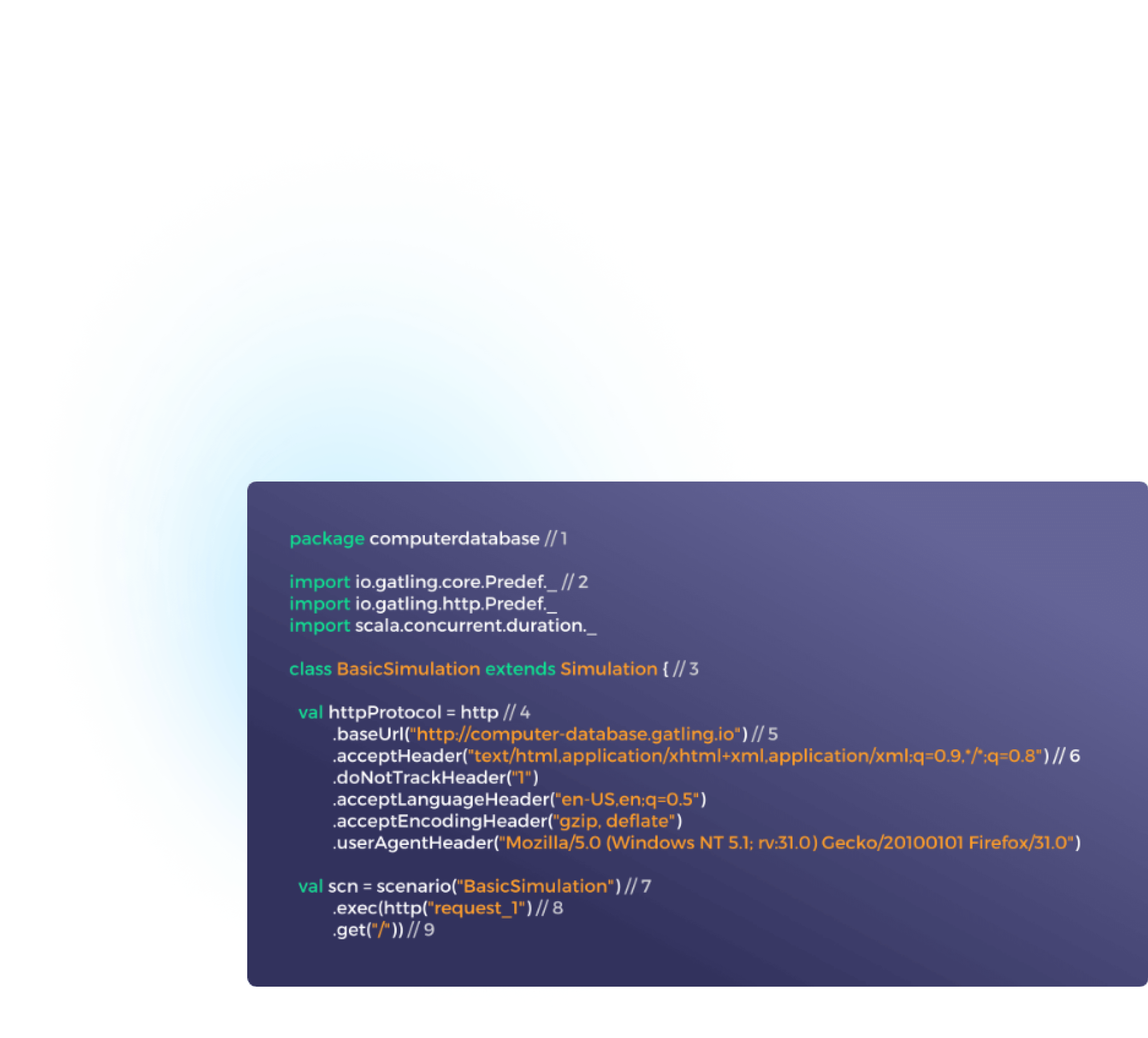 Use our simple API to integrate and automate your gatling tests in a simple script with just a few lines.