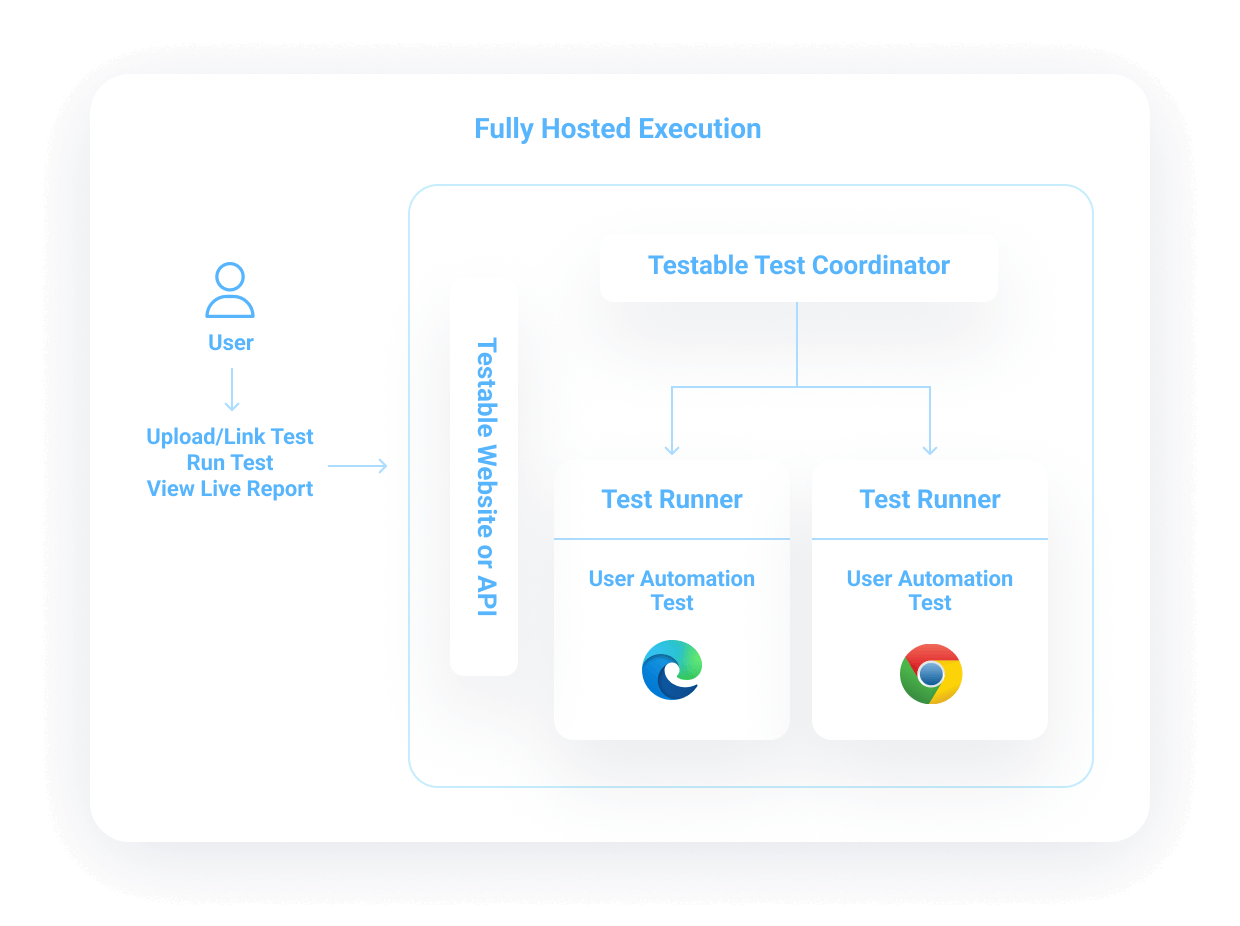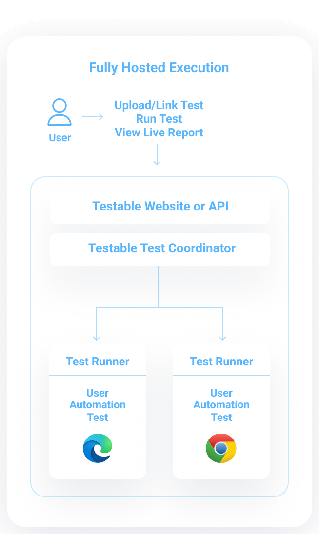 • Test runners can be automatically spun up at the start of your test and terminated at the end. Alternatively setup long running test runner grids to run multiple tests.