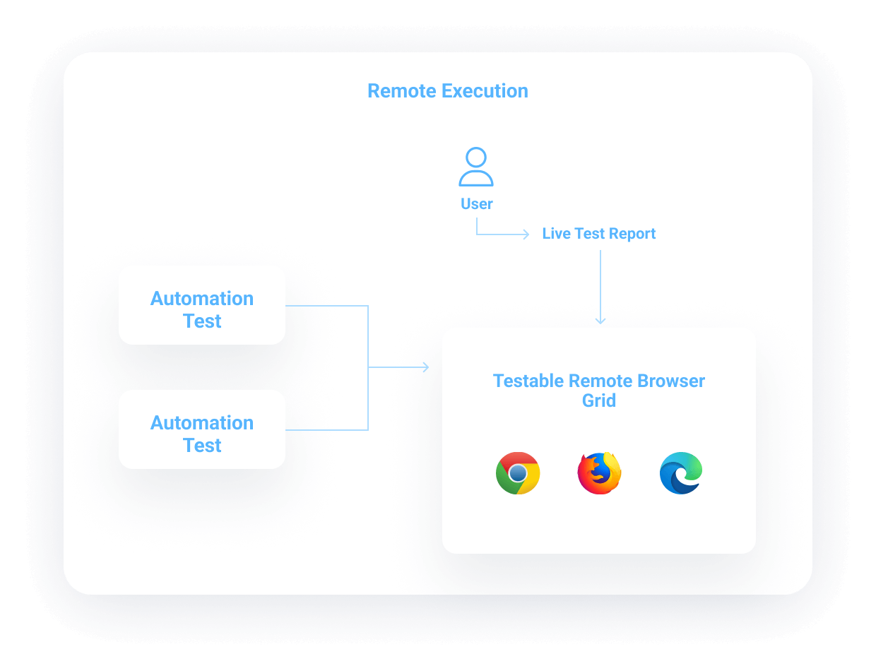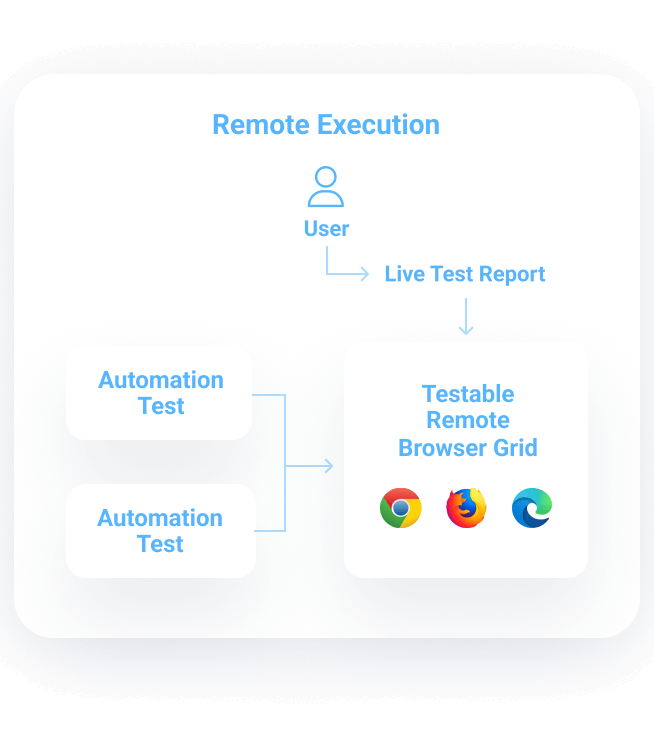 Run your Puppeteer tests directly on Testable Cloud or or on your own infrastructure with a small configuration change that points it at Testable Cloud for remote browser provisioning allowing you to take advantage of the Testable value add features.